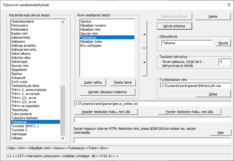 | ExTimen vakiotulosteisiin piti yleisurheilun tuloksia varten lisätä