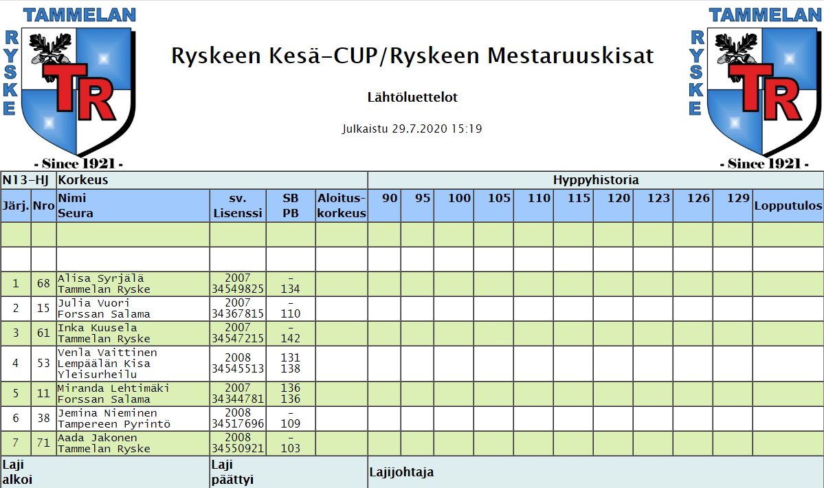 Ryskeen Kesä-CUP/Ryskeen Mestaruuskisat 16.7.2020